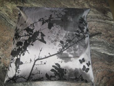 Sort/sølv polyester. Inderpude i bomuld med lynlås